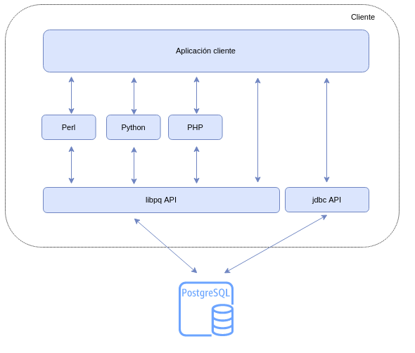 En la siguiente imagen se muestra la arquitectura del cliente PostgreSQL.