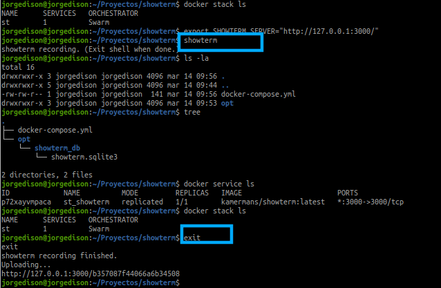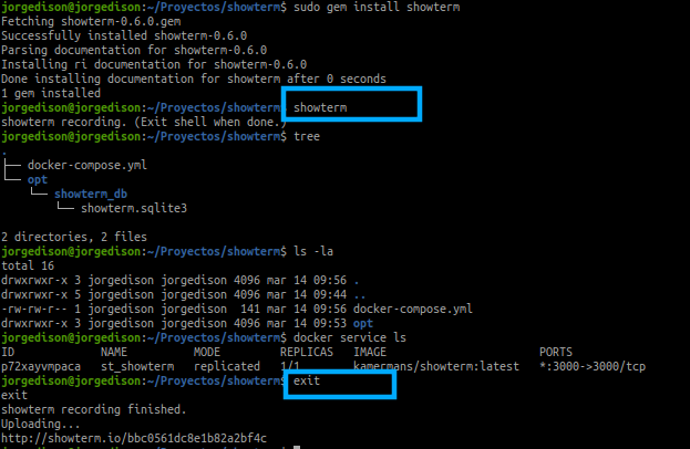 El cual generará y compartirá lo grabado en la siguiente ruta publica http://showterm.io/bbc0561dc8e1b82a2bf4c