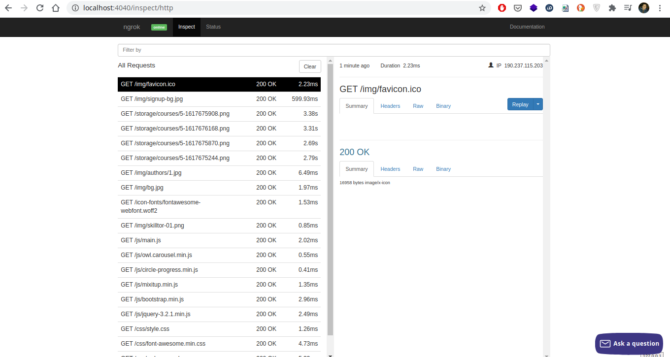 Una vez que haya iniciado, podemos ver información acerca del tráfico en una interfaz web a través de http://localhost:4040 para ver los detalles de las peticiones.